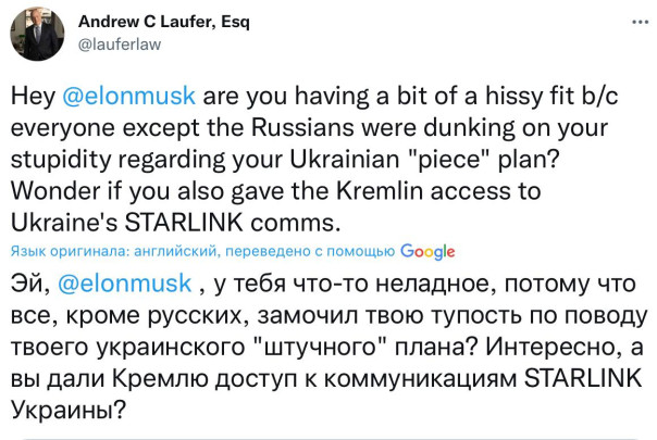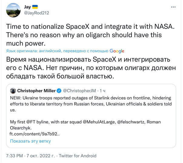 «Мне совершенно ясно, что это делают представители Starlink, чтобы предотвратить использование их технологий российскими оккупационными силами», — сказал один из украинских активистов. По его словам, украинским военным и SpaceX необходимо более тесно координировать свои действия.