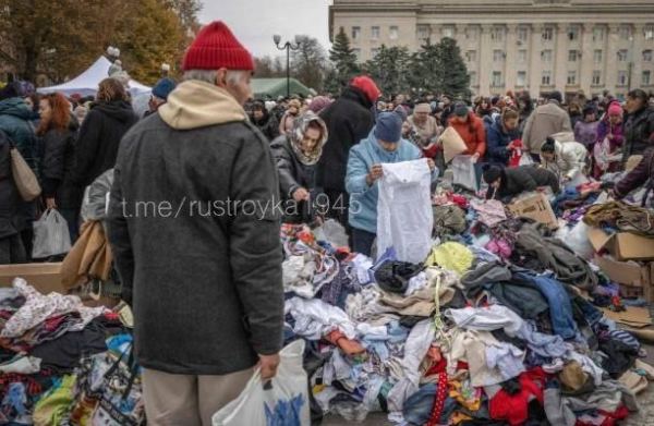С целью проявить «заботу» о херсонцах, оказавшихся в невыносимых условиях, им доставили украинскую гуманитарку. Нет, не воду, не продукты питания, не лекарства и не предметы первой необходимости, а мешки с ношеным тряпьём, которые пафосно вывалили просто посреди площади. Но и за этими обносками началась давка...