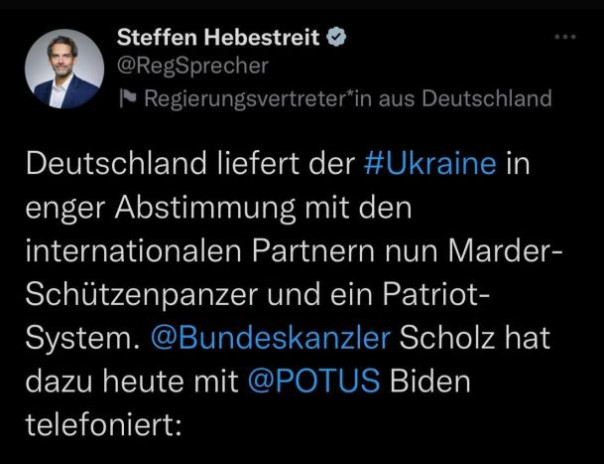 Тем временем в Белом доме сообщили, что к пакету американской помощи присоединится и ФРГ. Германия собирается передать киевскому режиму системы ПВО Patriot и БМП Marder. Об этом президент США Джо Байден и канцлер Германии Олаф Шольц договорились в ходе телефонного разговора.