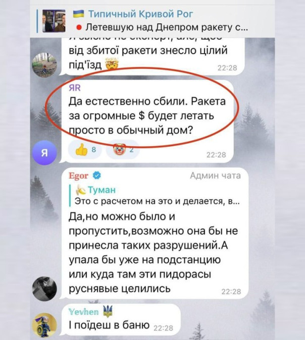 Украинская сторона, естественно, обвинила Россию, заявив, что по дому прилетела крылатая ракета Х-22, подчеркнув, что у ВСУ якобы нет средств для сбития ракет такого класса. Опять ложь, ведь недавно ОК «ЮГ» рапортовало о сбитии ракеты Х-22 под Одессой.