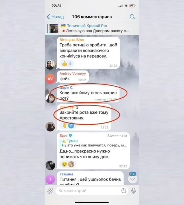 «Зачем нужна такая правда? Закройте уже рот этому Арестовичу! Он дискредитирует наши войска!» — возмущаются «патриоты».