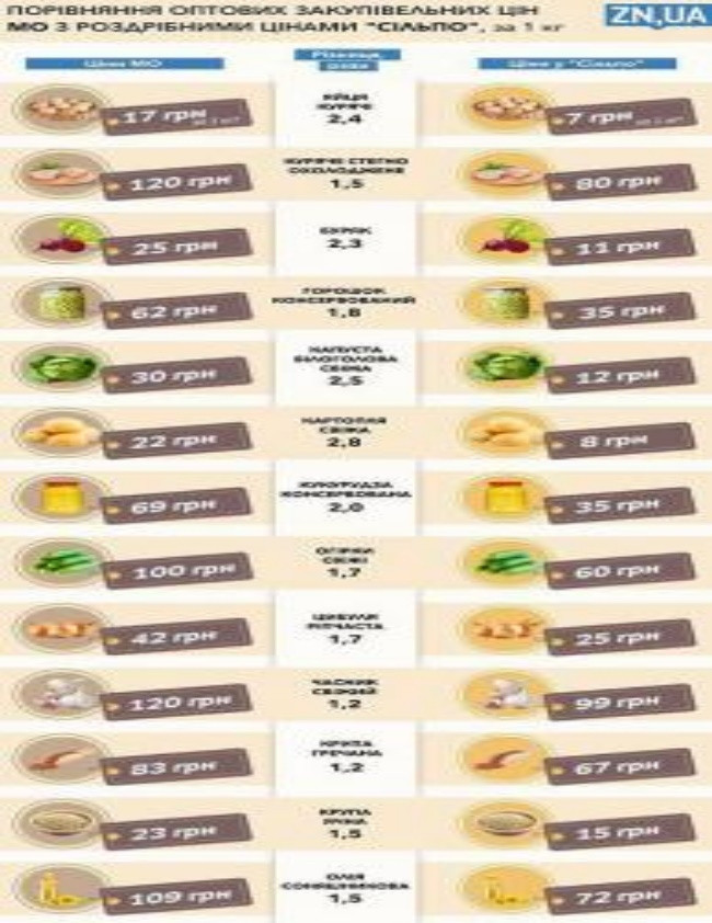 Картофель у фирмы – якобы победительницы конкурса, стоит по 22 грн за килограмм, в то время как его обычная розничная цена, с учетом уже всех накруток – 8-9 грн. Свёкла (та, которая на Украине зовётся буряком) будет поставляться в ВСУ по цене 25 грн. за килограмм, в то время как ей красная цена – 10-11 гривен. У, и так далее. Со всеми ценами читатель может самостоятельно ознакомиться, скачав сам документ по ссылке выше.
