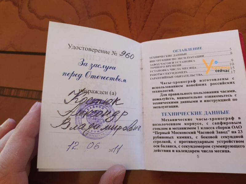 Побывали сотрудники СБУ и в кабинете бывшего члена Общественного совета при Минобороны и главы Всеукраинской общественной организации «Соборное Гетманское Казачество» Александра Костюка, где якобы нашли ряд российских знаков отличия. Самой весомой «находкой» стали позолоченные наручные часы-хронографы, вручённые Костюку в 2011 году тогдашним президентом РФ Дмитрием Медведевым в комплекте с удостоверением «За заслуги перед Отечеством». Среди других наград — памятный знак «За возрождение казачества», юбилейный крест «20 лет Крымскому казачьему союзу», а также орден «Екатерины Великой» II степени и соответствующая книжка к нему.
