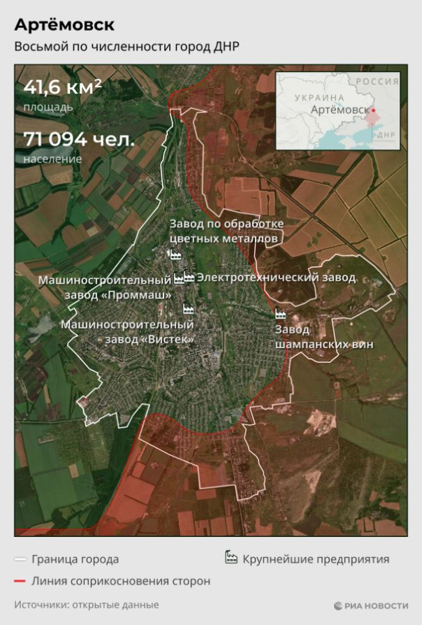 В пятницу днем вице-премьер правительства Украины Ирина Верещук призвала жителей Артемовска как можно скорее покинуть город. Украинские СМИ писали, что оттуда начали вывозить архивы госучреждений. Пресс-секретарь восточной группировки ВСУ Сергей Череватый сообщил об ограничении доступа в Артемовск для гражданских лиц. Источник