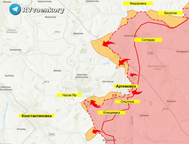 - На Артемовском направлении российские силы наносят удары по позициям украинских боевиков и ведут штурмовые действия вблизи н.п. Берховка, Ивановское и Северная в ДНР. Россия активно ведет авиаразведку для управления артиллерийским огнем.