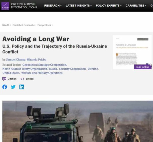 Однако авторы указывают на негативные последствия более длительной войны. Большие потери Украины в живой силе сделают невозможным полноценные боевые действия в долгосрочной перспективе. Тем не менее, по мнению экспертов RAND, формула войны «до последнего украинца» пока остается в силе.