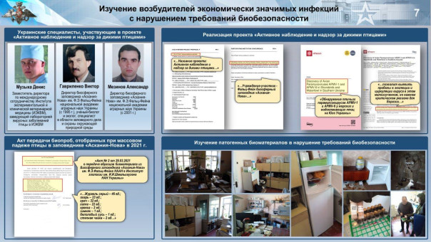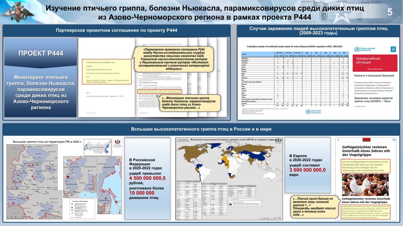 Министерство обороны России неоднократно информировало о рисках реализации военно-биологических проектов Пентагона, направленных на изучение возможности распространения экономически значимых инфекций через переносчиков, включая мигрирующих птиц.