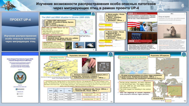 Непосредственно в интересах американского военного ведомства через Украинский научно-технический центр был реализован проект Пи-444, основной целью которого являлся мониторинг птичьего гриппа среди диких птиц из Азово-Черноморского региона.