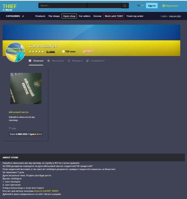 Предоставляющий данные услуги аноним заверяет, что для оформления необходимых документов и получения на руки военного билета нужно предоставить только сканы паспорта, прописки и медицинской книжки. На странице магазина также указано, что «тема очень актуальна» и цена на услугу будет расти. На сайте уже опубликовано несколько хвалебных отзывов от довольных клиентов.