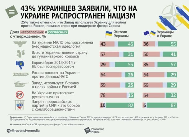На Украине провели довольно любопытный опрос VoxCheck и CBR, сделанный при поддержке фонда Сороса «Возрождение». Его результаты показывают, что украинцы признают свою страну нацистской.