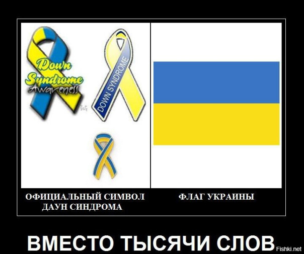 Тем более что Провидение по своему милосердно и защищает юродивых и дураков, вот и об свидомых украх позаботилось - дало им флаг и символику больных болезнью Дауна, чтобы окружающие сразу понимали с кем имеют дело.