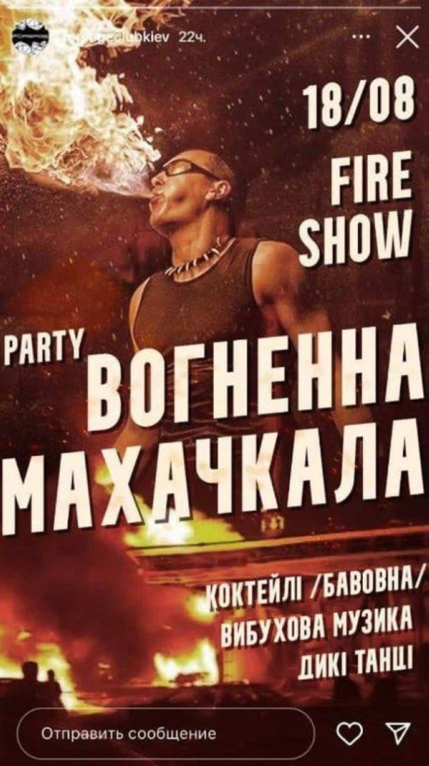 Киевский ночной клуб под названием Forsage недавно, на 18 августа, анонсировал тематическую вечеринку под названием… «Огненная Махачкала». Данный шабаш посвящён трагедии, произошедшей 14 августа в Махачкале на автозаправке. За считанные дни людоедские украинские «креаклы» успели состряпать афишу и начать зазывать «патриотическую» клиентуру.