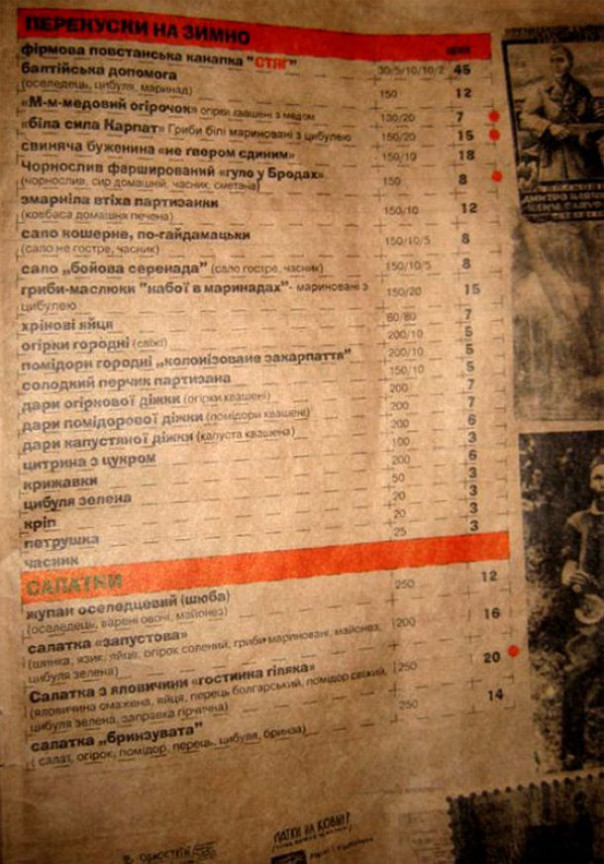 Кабак был тематический, и хозяева обустроили его в виде бандеровского схрона. Но дело даже не в том, что эта гастрономическая контора пропагандировала украинский нацизм и коллаборантов задолго до СВО и даже самого майдана. Суть в меню этого заведения. Так, одним из излюбленных фирменных блюд «Криивки» было «кошерное сало по-гайдамацки».