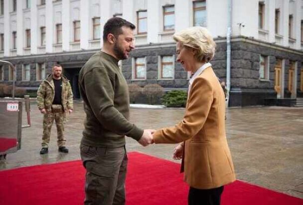 В Киев приехала глава Еврокомиссии Урсула Фон Дер Ляйен. Как водится, неожиданно и на поезде. На вокзале важную фрау встречал сам пан Зеленский, где он сам и гостья произнесли прочувствованные речи