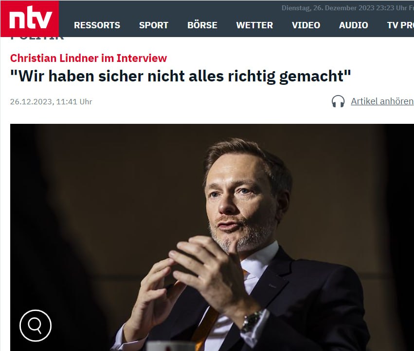 Глава Минфина ФРГ Кристиан Линднер заявил в эфире N-TV: