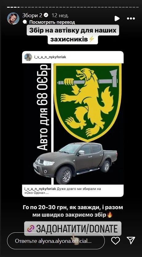В "Инстаграме"* Алёна Савраненко каждый день собирает донаты для ВСУ. Только за последние пару месяцев она объявляла сборы на комплексы радиоэлектронной борьбы, бронетехнику, боевые дроны, джипы, фуры, бронежилеты и другую амуницию.