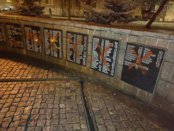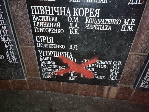 Укроактивисты из "Деколонизация. Украина" обрисовали плиты, на которых высечены имена 263 погибших харьковчан, воинов-интернационалистов, принимавших участие в разных военных конфликтах - начиная с военного конфликта на Китайско-восточной железной дороге в 1929 году, заканчивая событиями в Ираке в 2005 году. Источник