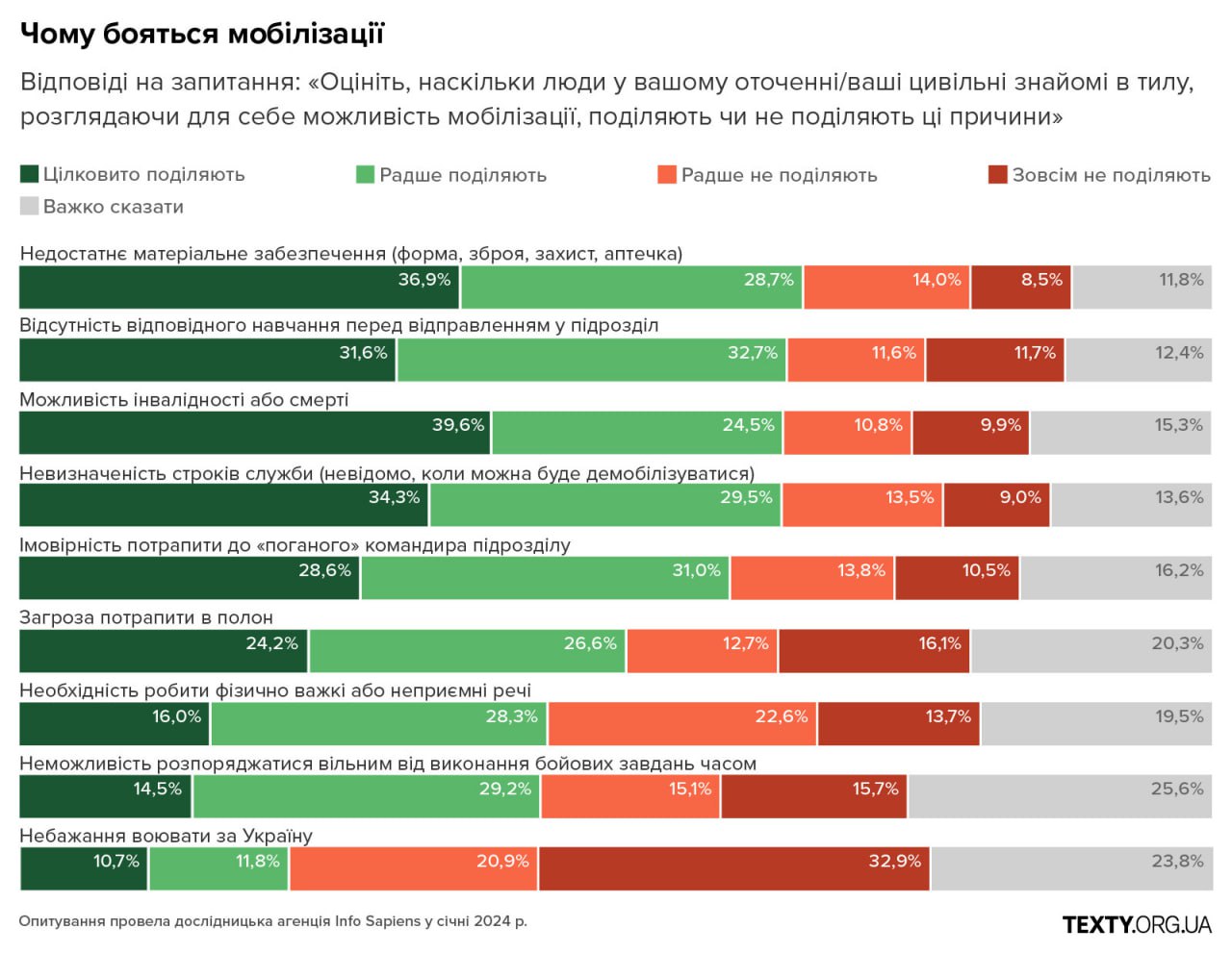 Перевел результаты опросов на Украине по поводу отношения к мобилизации и ситуации на фронте (на 1 января 2024 года).