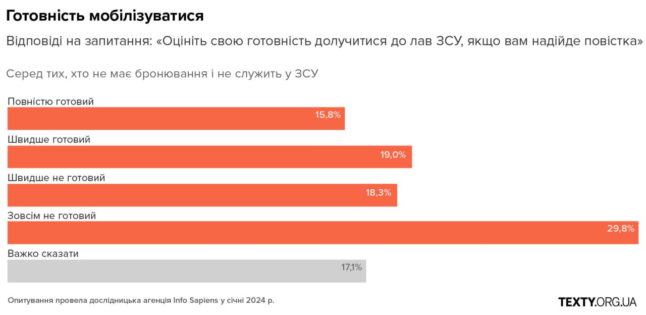 Бросается в глаза, что украинцев не готовых к мобилизации на 13,3% больше чем готовых.