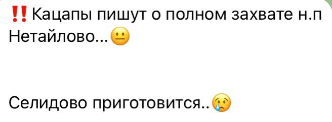 "Нетайлово переходит под полный контроль врага, русские смогли там закрепиться, их там целая толпа уже. Становится очень тяжело в Яснобродовке и пока часть Уманского держим, другие улицы под контролем врага, каждый раз они накапливают силы и занимают подвалы, из которых будет очень трудно их выкурить".