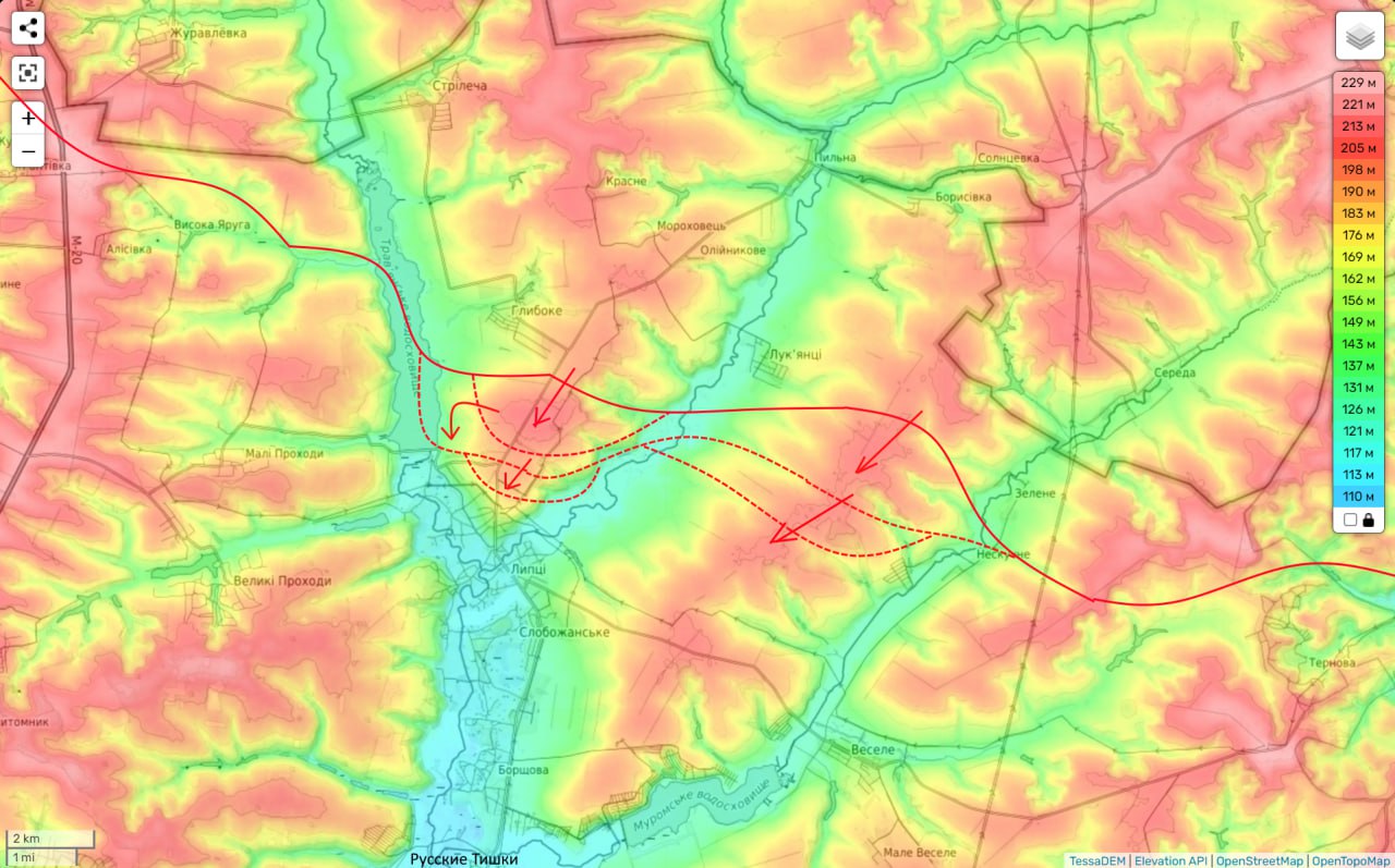 Именно поэтому сегодня, параллельно с очень мощной работой авиации, танков и артиллерии по Липцам и Слобожанскому, наши части проводили атаку по этому самому холму.