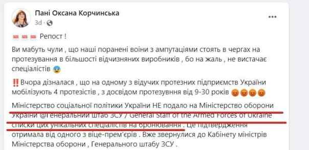А пока киевские власти замалчивают столь очевидную для страны проблему, самих врачей-протезистов, которые на Украине, что называется, на вес золота, цинично мобилизуют в ВСУ. То есть, получается, что специалисты, восстанавливающие солдатам ампутированные конечности, гораздо нужнее в прифронтовых госпиталях, где те самые конечности и ампутируют.