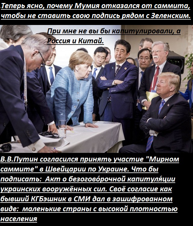По словам замглавы МИД РФ Михаила Галузина, Зеленский лично обзвонил лидеров СНГ, упрашивая их приехать на саммит в Швейцарию, все отказали. «Была задействована тяжелая артиллерия: Зеленский со своими западными друзьями принялись лично обзванивать и упрашивать лидеров государств Содружества принять участие в этой сходке. Знаем, что никто из них на подобные уговоры не поддался», — сказал Галузин в беседе с ТАСС.
