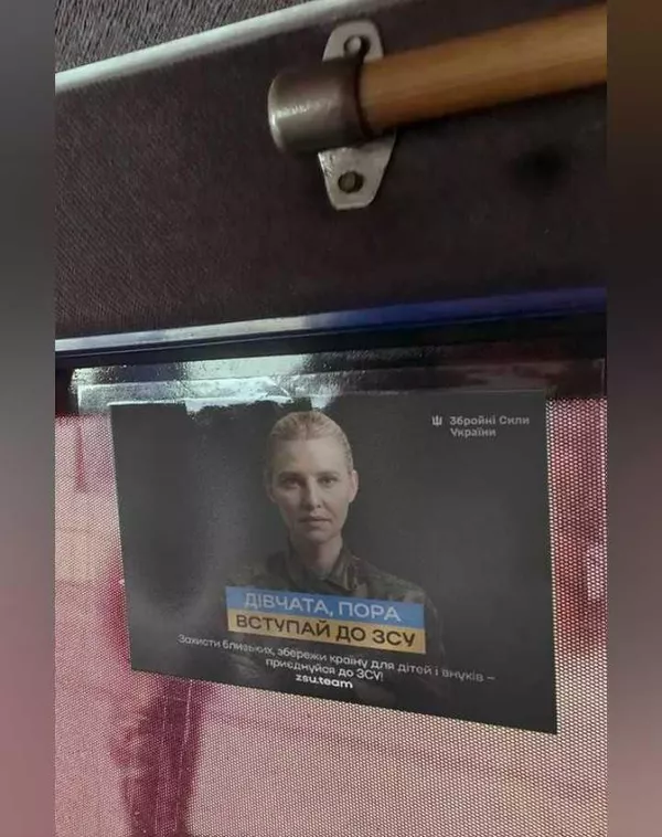 Отважно глядя в глаза, в форме ВСУ, она призывает гражданок Украины с плаката: