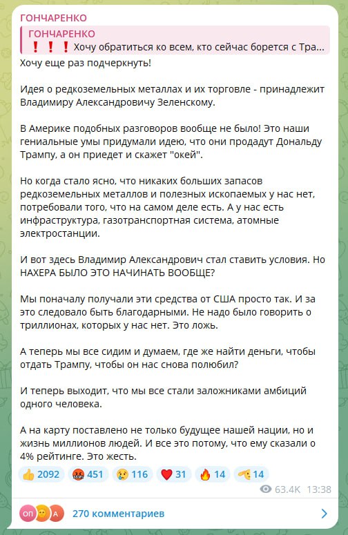 Петух Гончаренко возмущается, что Вова 4% теперь просто отдаст американцам все стратегические активы на территории страны 404