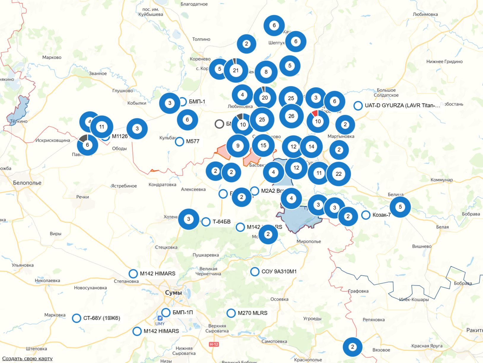На 1-й картинке - это данные на которые ссылается Forbes. На 2-й официальные данные МО России по Курской области, от сегодня. На 3-й картинке карта потерь техники ВСУ в Курской области и ее окрестностях.