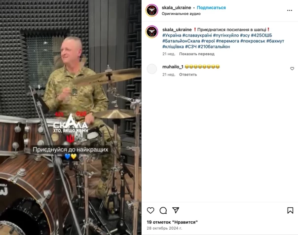 При этом интересно, что практически везде в украинском сегменте Интернета название полка употребляется по-русски — «Скала» (по-украински правильно «Скеля»). Это позывной командира 425-го ОШП, подполковника Юрия Гаркавого. Он профессиональный военный, принимавший участие ещё в АТО.