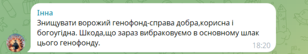 "Уничтожать вражеский генофонд-дело доброе, полезное и богоугодное. Жаль, что сейчас выбраковываем в основном шлак этого генофонда".
