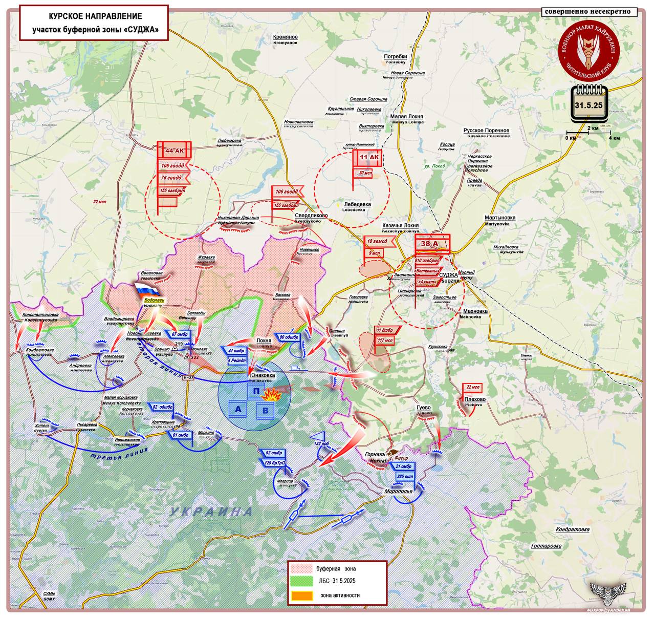 ● Освобождены опорные сёла – Водолага и Алексеевка. Российский "штурмы" уже взяли половину Юнаковки. Той самой Юнаковки, из которой Зеленский в минувшем году отправлял своих головорезов на Суджу.