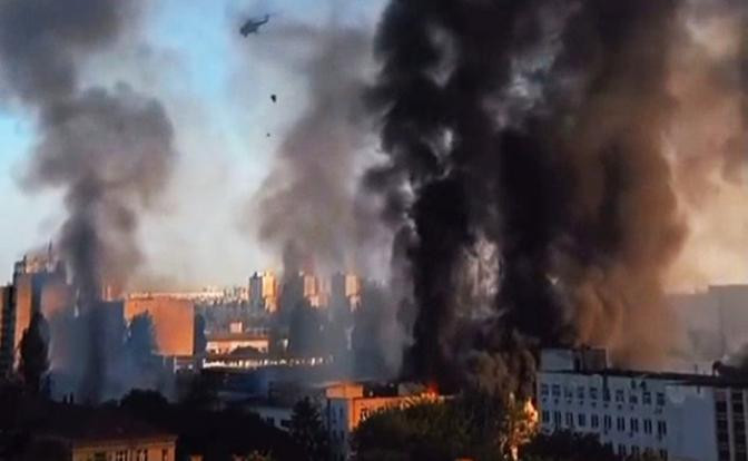 В ночь на 10 июля столица бандеровцев подверглась массированной атаке. Появившиеся кадры свидетельствуют фактически о нулевой работе укро-ПВО. Самостийные СМИ шлют проклятия в адрес «Гераней».