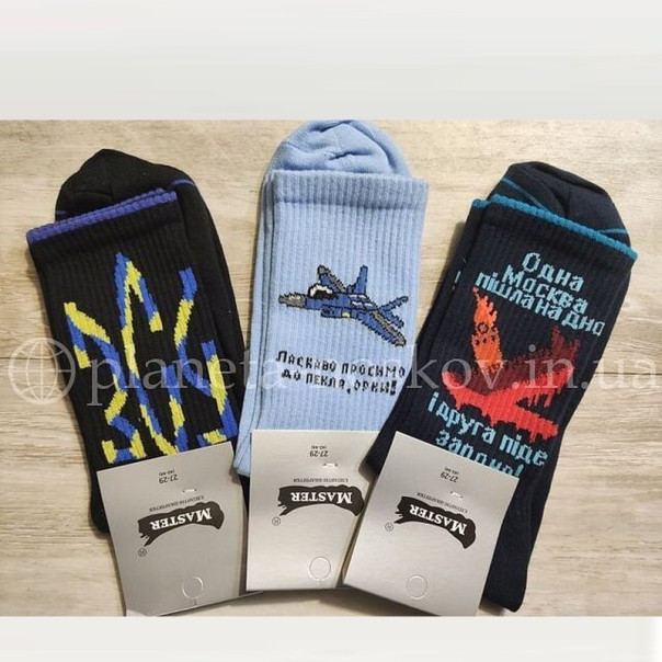 Но если раньше производители шерстяного и хлопчатобумажного патриотизма ограничивались лишь украинской символикой – гербом, флагом, а также матерными слоганами, которые придумали украинские пропагандисты, то полтавский интернет-магазин носков Premier Socks пошёл ещё дальше. Теперь на официальной страничке этого бренда можно приобрести носки Premier Socks: «Пакет Малюка». На носках изображены атакующие дроны, несущие подарочные пакеты, и горящие самолёты.