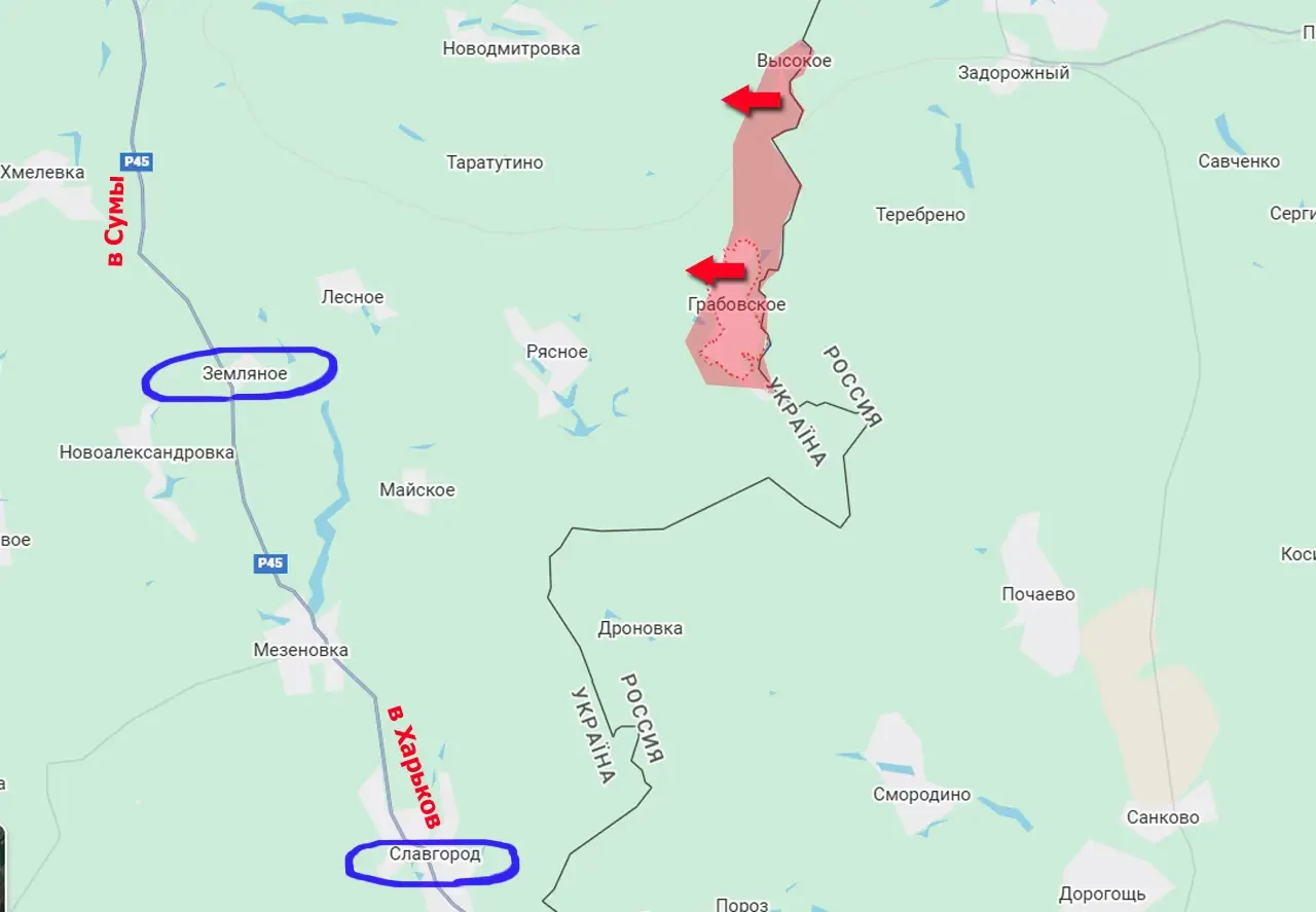 Занятие Высокого и Грабовского ставят противника в непростое положение. Пока он «упирается» на Купянском направлении, ВС РФ продвигаются к ключевой для ВСУ на северо-востоке Украины автомобильной дороге Р45 Сумы-Харьков. Грабовское находится от этой автодороги на расстоянии менее 10 км.