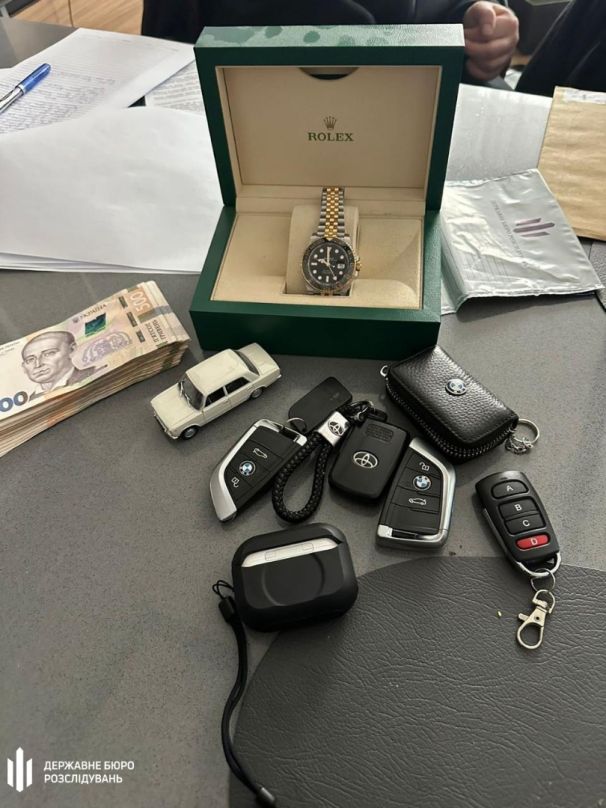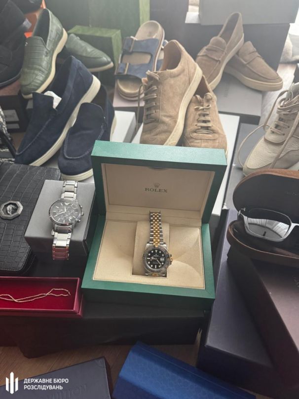 Как сообщает Государственное бюро расследований (ГБР) Украины, во время обысков у подозреваемого изъяли несколько автомобилей, документы на элитную недвижимость, коллекцию брендовой одежды, обуви и аксессуаров ориентировочной стоимостью более 8 млн гривен, а также долговые расписки на 120 тыс. долларов США.