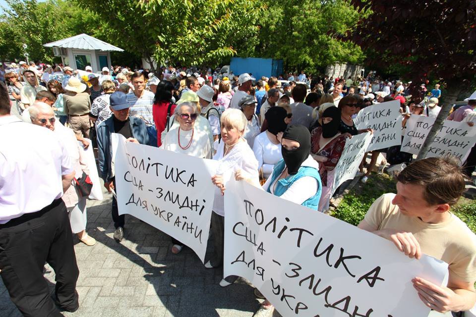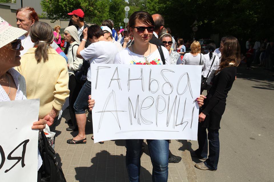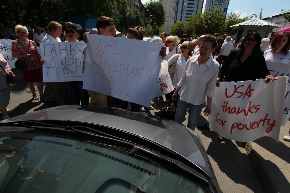 Лозунги: "Где АМЕРИКА, там ВОЙНА!", "США – убийцы Украины!", "США – ГАНЬБА!", "США+ОРУЖИЕ=ВОЙНА!",- судя по всему, не стали для американцев чем-то вызывающим, что необходимо отрицать!