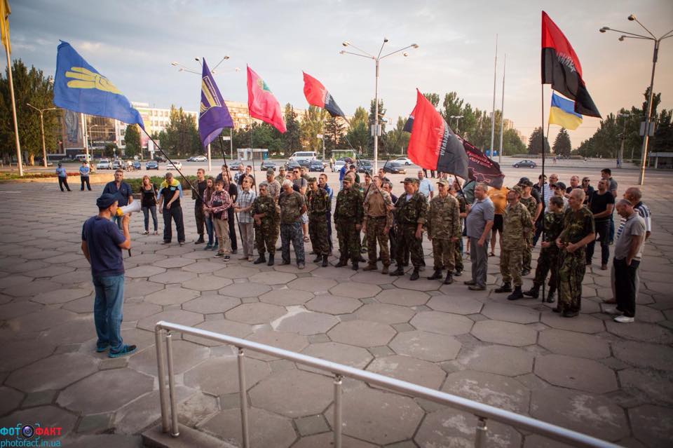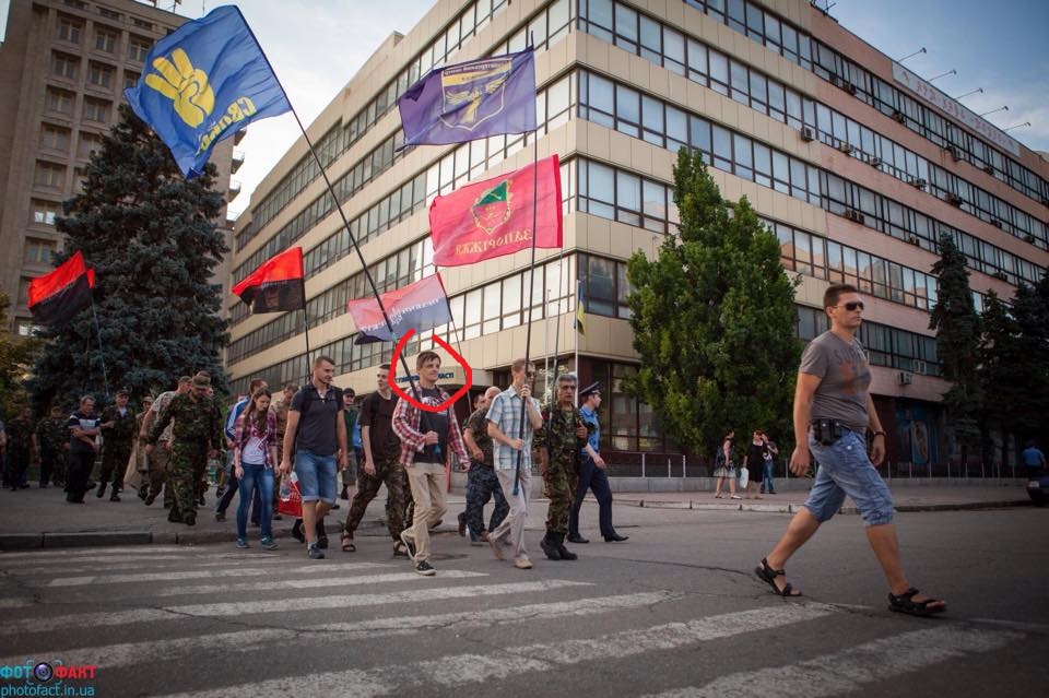 Запорожье. Местные упоротые типа поддержали вчерашний шабаш правосеков по поводу хуйпоймичего закончившийся ничем. Красным кружочком обвел местного транса Олесю (в девичестве Александр) Побел...