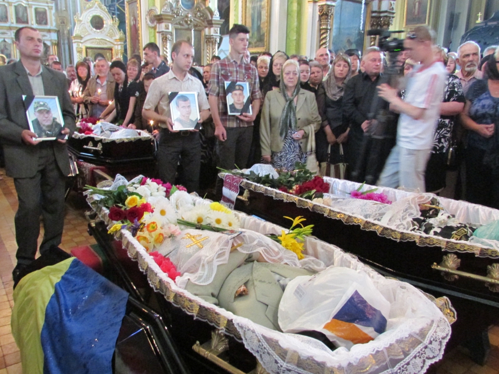 Попрощаться с солдатами пришли несколько десятков запорожцев, чиновники и военное руководство, сообщает