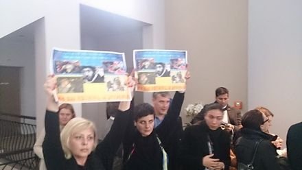 Целью акции было привлечение внимания мирового сообщества к событиям, происходящим на Украине. Но сразу же после начала акции в происходящее вмешалась полиция.