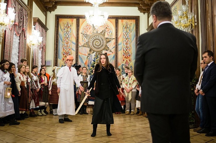 «Рождественский вертеп Украинской Академии Лидерства поздравил Президента. "Для меня этот вертеп является символом изменений в Украине. Два года назад никто не мог себе представить в вертепе волонтера, медицинского работника, бойца Нацгвардии или воина АТО. Это новые образы, которые характеризуют новую Украину", - сказал Петр Порошенко после просмотра спектакля».