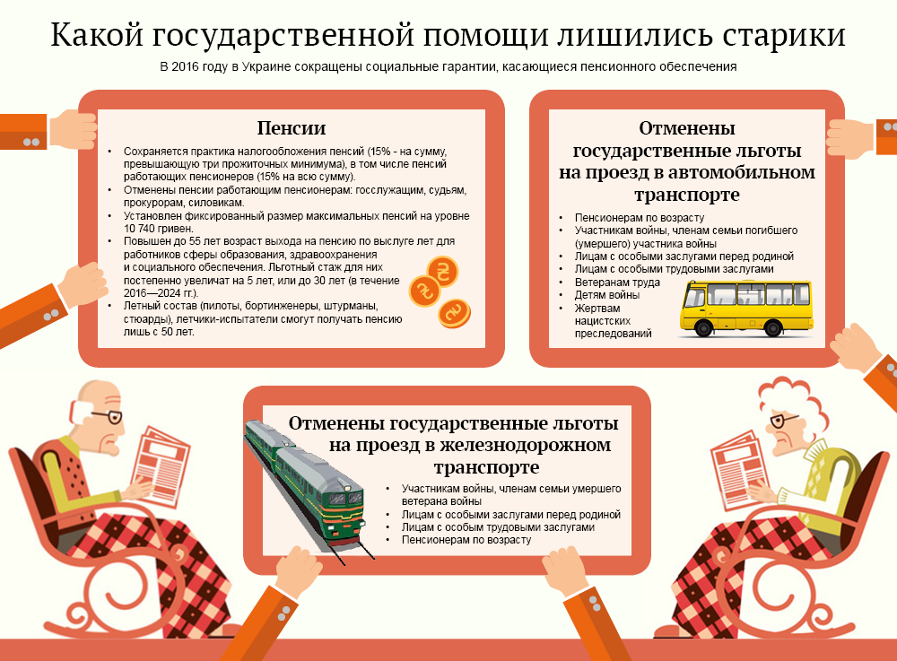 В январе 2016 года вступил в силу закон о социальных выплатах, согласно которым многие льготы для украинцев пенсионного возраста отменяются.