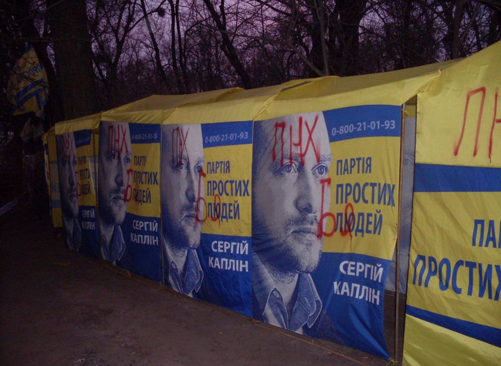"Около 4 утра на наш Тарифный Майдан пришла Татьяна Чорновол. Народный депутат вооружилась баллончиками с краской и исписывает палатки. При попытках ей помешать - брызгает краской на наших активистов, бьется и ругается. Кажется, она выпившая. На место приехала полиция, однако правоохранители просто наблюдают за этим дебошем. У Татьяны Чорновол - агония перед отставкой Яценюка. Интересное время выбрала для своего нападения на протестующих, - как Беркут, когда приходил штурмовать Майдан. Мы обращаемся в полицию с заявлением о повреждении имущества народных депутатов Каплина и Сугоняко", - написал он.