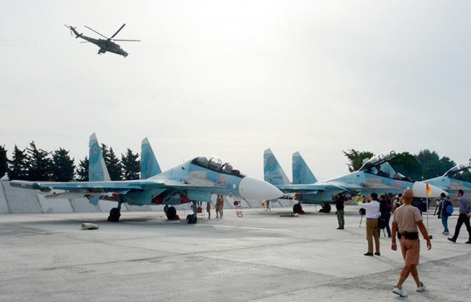На базе Хмеймим — выставка достижений народного хозяйства. Впечатляет. Адский грохот истребителей, то взлет, то посадка, вонь керосина. База бессрочно. Военные с крестьянским загаром (темные руки и лица). Их голоса со мной: «Турция вон за той горой!» «Россия рулит…» «Страшно, что потерял чувство страха»…