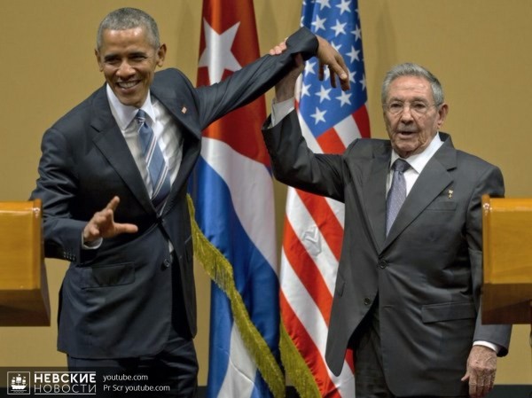 Мировая общественность отреагировала на поступок кубинского лидера Рауля Кастро, который на пресс - конференции с президентом США Бараком Обамой не разрешил похлопать себя по плечу. Кубинский лидер сжал руку Обамы и помахал ею в воздухе. Президенту США оставалось только улыбнуться.