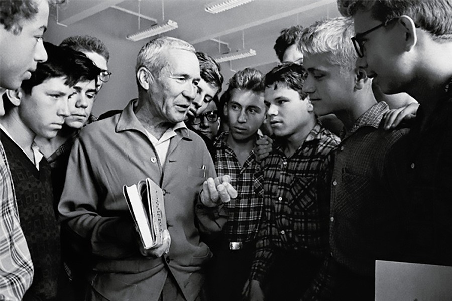 На фото: А.Колмогоров и ученики математической спецшколы при МГУ