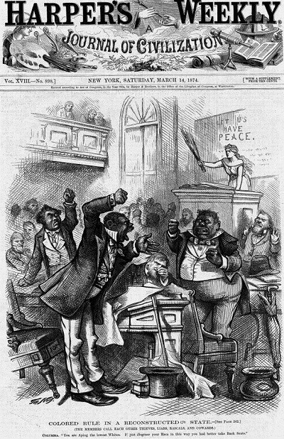 «ЦВЕТНЫЕ ЗАНИМАЮТСЯ РЕФОРМИРОВАНИЕМ США». Американская политическая карикатура конца XIX века