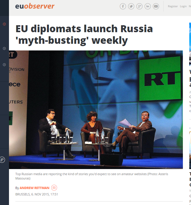 Надо сказать, что на дискуссии 29 апреля, щедро оплаченной американскими и европейскими правительствами и фондами, в контексте обсуждения темы нового антироссийского проекта «Обмен» звучало и еще кое-что интересное – а именно расширения участия НАТО в противодействии «Кремлевской пропаганды». К примеру, выступающий дипломат Йон Кюст привел отличный пример, как Североатлантический альянс может воевать с Россией в интернет-пространстве. У датчанина прошлой осенью с подачи Европейского фонда в поддержку демократии и StratCom (центр Стратегический коммуникаций НАТО) запустился проект Disinfo Review – обзор так называемой дезинформации в российских СМИ и якобы пророссийской прессе ЕС.