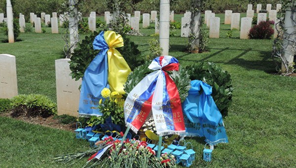 Российские и украинские дипломаты возложили в воскресенье венки к могиле советского воина Николая Шевеля на союзническом кладбище в Палео Фалиро в Афинах.